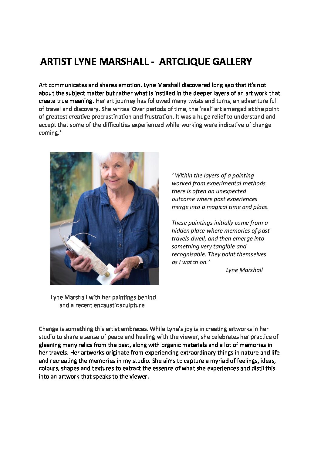 ARTIST LYNE MARSHALL_ARTCLIQUE GALLERY